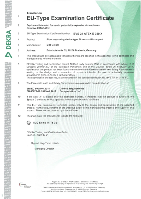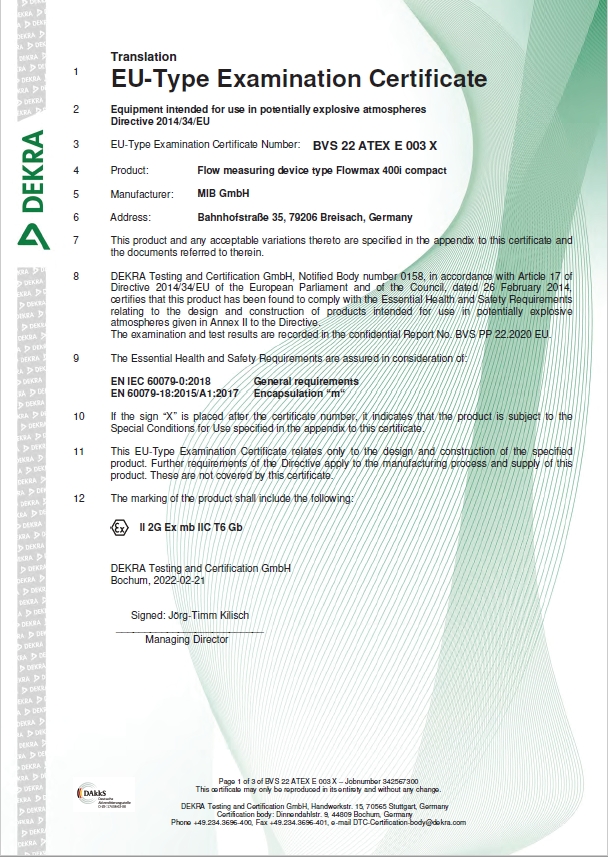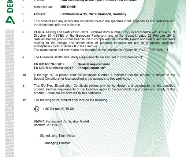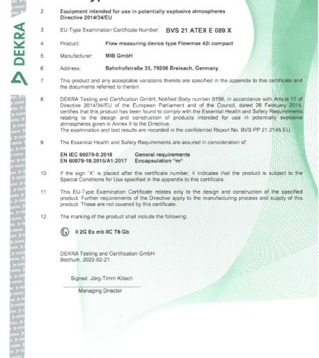 MIB GmbH is proud to announce the EX and IECEx certification of the Flowmax 42i and Flowmax 400i units.